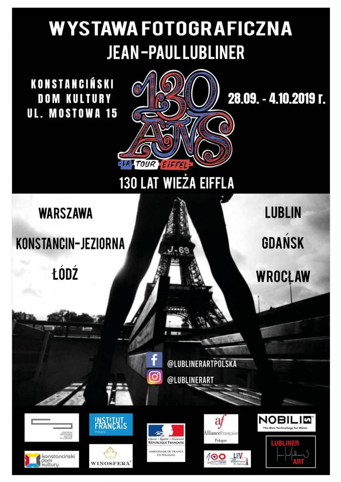 Konstanciński Dom Kultury zaprasza na wystawę fotografii Jean-Paula Lublinera z okazji 130-lecia wieży Eiffla. Znana polsko-francuska aktorka Elisabeth Duda, kurator wystawy i artysta-fotograf o światowej renomie Jean-Paul Lubliner postanowili wystawić 130 zdjęć „Żelaznej Damy” w 6 różnych miastach w Polsce. Wśród tych miejsc znalazł się Konstancin-Jeziorna. Wyjątkowe fotografie będzie można oglądać w Konstancińskim Domu Kultury „Hugonówka” przy ul. Mostowej 15 od 28 września do 4 października.