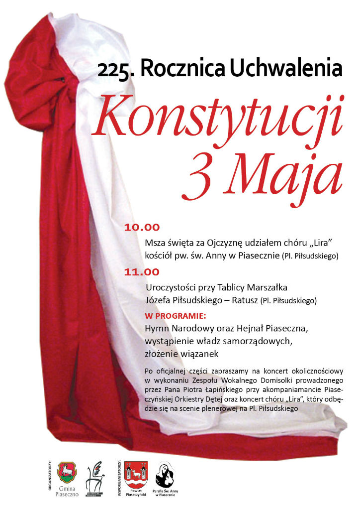 3 maja 2016 roku zapraszamy do wspólnego uczczenia 225. Rocznicy Uchwalenia Konstytucji 3 Maja.