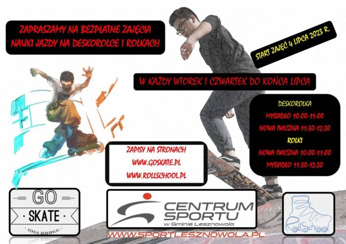 Każdy wtorek i czwartek lipca bezpłatne zajęcia z instruktorami na terenie skateparków w Nowej Iwicznej i Mysiadle.