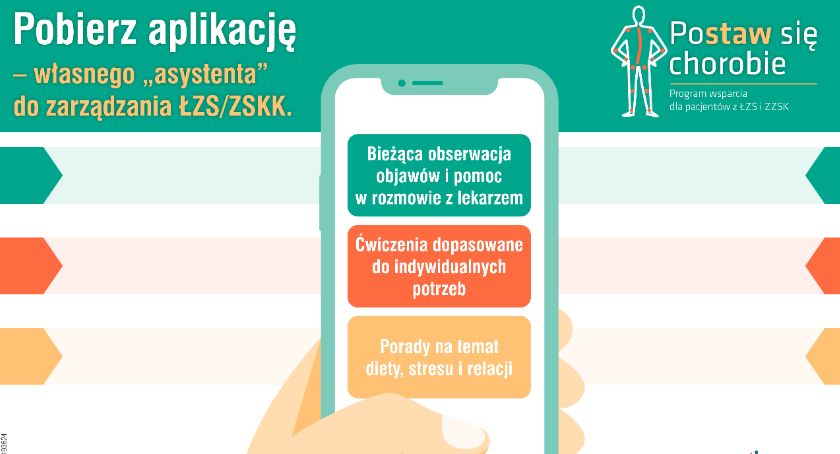 Dieta ograniczająca spożywanie produktów prozapalnych, aktywność fizyczna, fizjoterapia oraz rehabilitacja są niezbędnym elementem terapii wpływającym na poprawę mobilności, funkcjonowania oraz ogólnego zdrowia osób chorych na spondyloartropatie. Stąd pomysł stworzenia aplikacji na telefon „Postawsiechorobie”, dzięki której pacjent będzie miał dostęp do wszystkich niezbędnych informacji o ŁZS i ZZSK, ich leczeniu oraz codziennym funkcjonowaniu. Z pomocą dietetyka, fizjoterapeuty, psychoterapeuty i seksuologa zostały opracowane wskazówki, jak radzić sobie z chorobą. Ważnym elementem aplikacji jest dzienniczek samoobserwacji. Oczywiście, decyzje dotyczące leczenia muszą być podejmowane przez lekarza, ale na podstawie indywidualnych potrzeb i stanu choroby pacjenta – dzienniczek obserwacji oparty na tych samych kalkulatorach, z których korzystają lekarze, znacząco ułatwia proces decyzyjny. Jest to jedyna taka aplikacja dostępna dla pacjentów z ŁZS i ZZSK – do pobrania z Google Play i appStore.