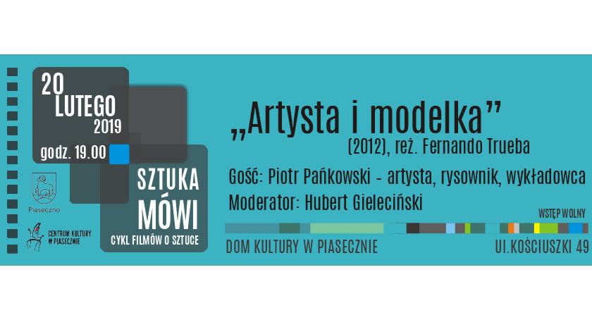 20 lutego 2019 roku o godz. 19:00 SZTUKA MÓWI – cykl filmów o sztuce „Artysta i modelka” (2012), reż. Fernando Trueba. Gość: Piotr Pańkowski – artysta, rysownik, wykładowca. Moderator: Hubert Gieleciński. Miejsce: Piaseczno, Dom Kultury, ul. Kościuszki 49. Wstęp wolny.