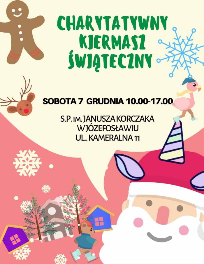 7 grudnia 2019 roku w godz. 10.00-17.00 zapraszamy na Charytatywny Kiermasz Świąteczny, który odbędzie się Szkole Podstawowej przy ul. Kameralnej 11 w Józefosławiu. W programie zaplanowana została moc atrakcji, niespodzianki oraz licytacja.
