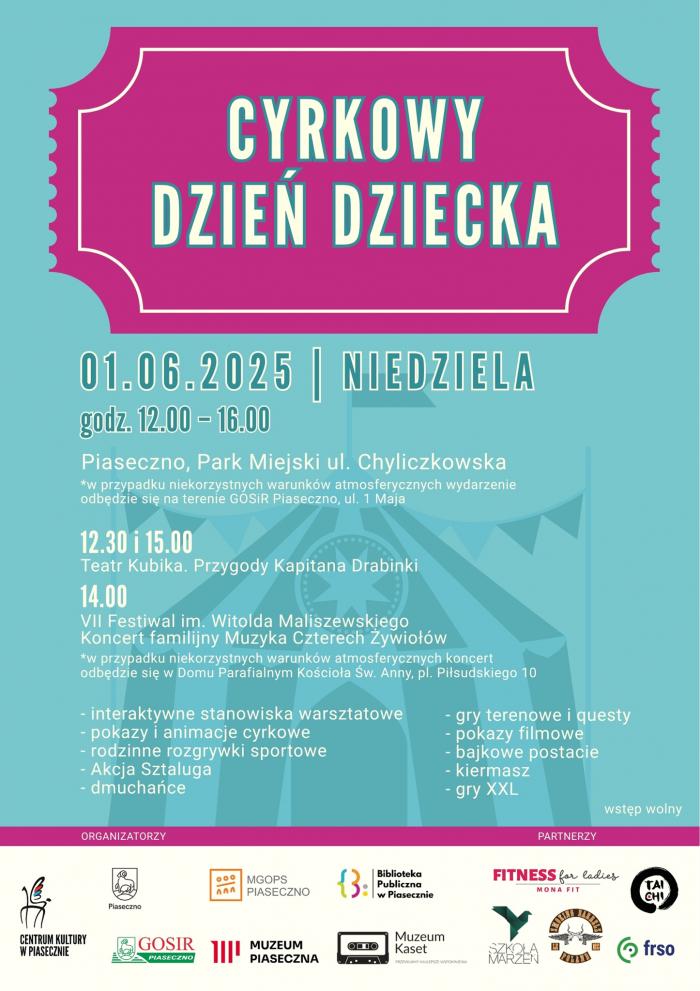 1 czerwca 2025 roku o godz. 12.00 odbędzie się wydarzenie Ale Ubaw! Cyrkowy Dzień Dziecka. Wstęp wolny. Miejsce: Park Miejski Piaseczno oraz parking miejski. W przypadku niekorzystnych warunków atmosferycznych wydarzenie odbędzie się na terenie GOSiR Piaseczno, ul. 1 Maja 16.