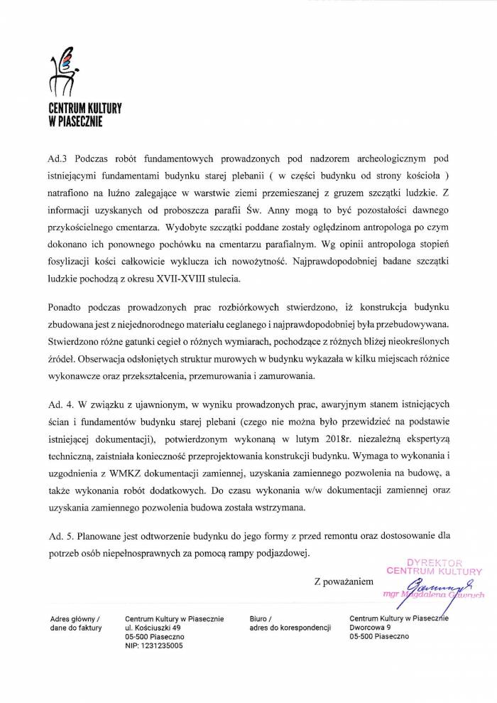 Prezentujemy otrzymaną odpowiedź z Centrum Kultury.