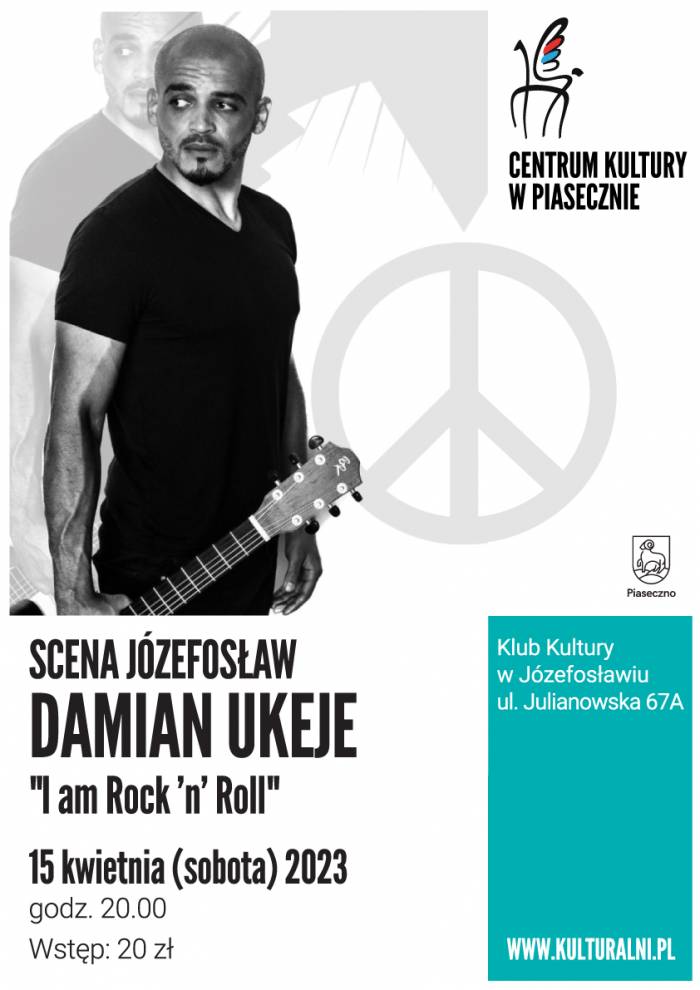 15 kwietnia 2023 roku o godz. 20.00 w ramach cyklu SCENA JÓZEFOSŁAW wystąpi DAMIAN UKEJE „I am Rock ’n’ Roll”. Wstęp: 20 zł. Miejsce: Józefosław, Klub Kultury, ul. Julianowska 67A.