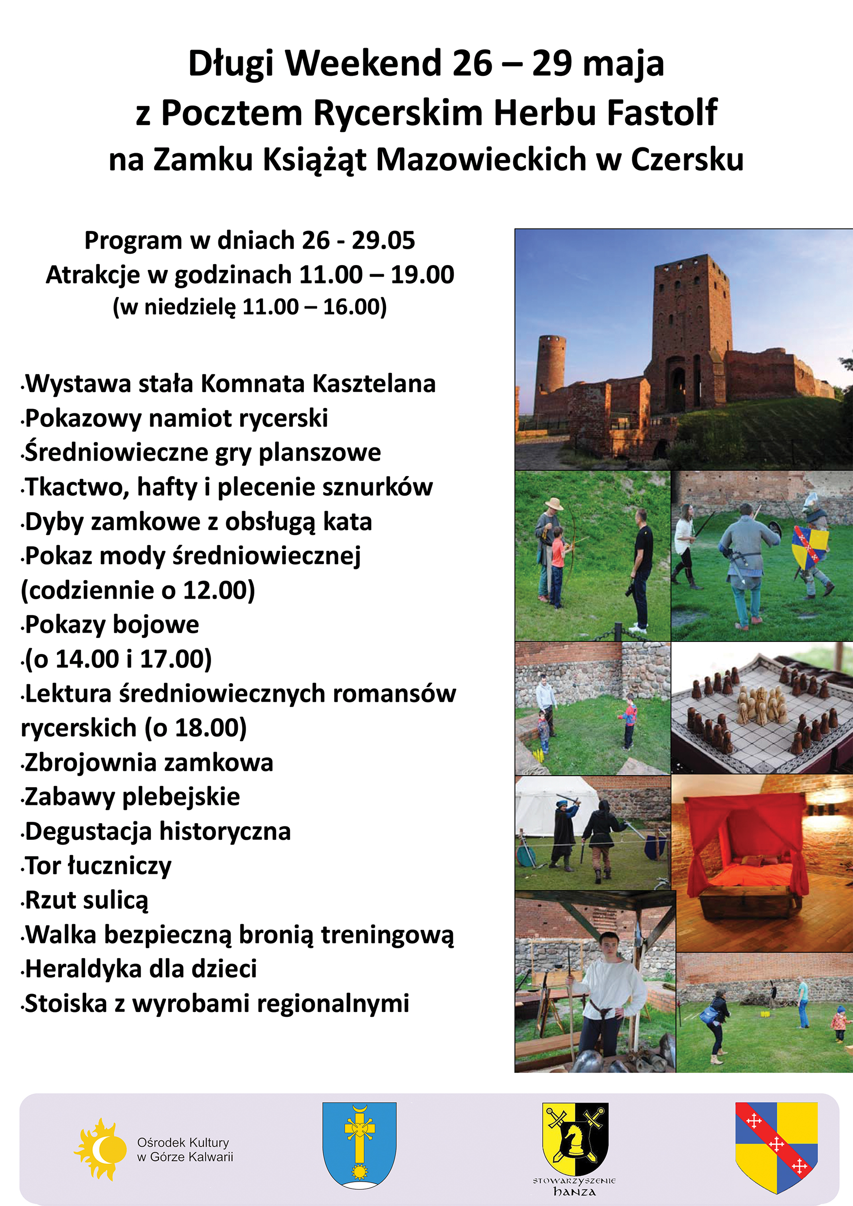 W dniach 26-29 maja 2016 roku odbędzie się długi weekend z Pocztem Rycerskim Herbu Fastolf na Zamku Książąt Mazowieckich w Czersku.