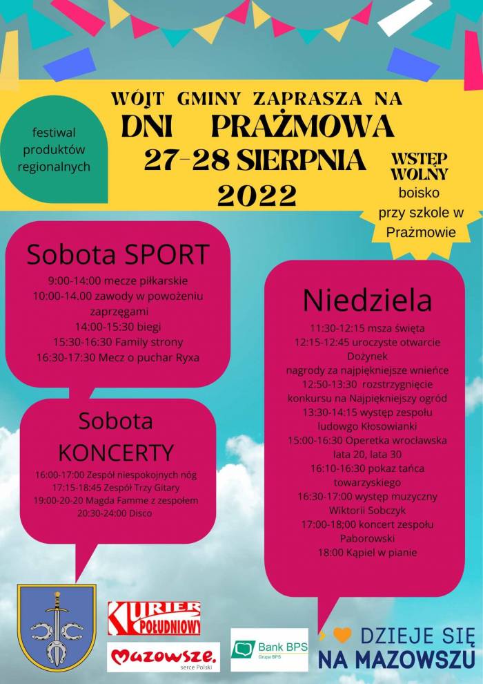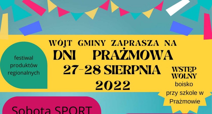 27 i 28 sierpnia 2022 roku odbędą się Dni Prażmowa 2022. Miejsce: boisko przy szkole w Prażmowie. Wstęp wolny. Organizatorzy zaplanowali wiele atrakcji, które znajdziecie na plakatach.