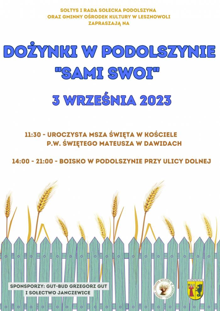 3 września 2023 roku odbędą się Dożynki w Podolszynie.