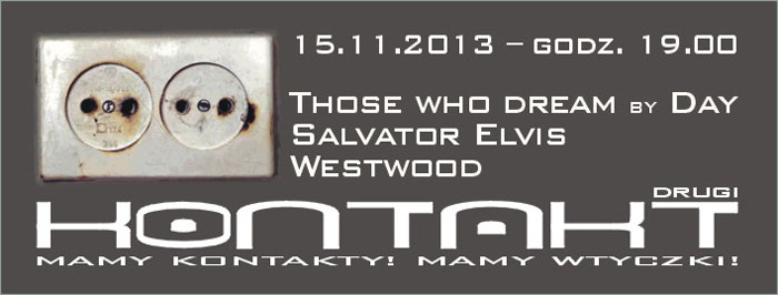 15 listopada 2013 roku o godz. 19.00 zapraszamy na Drugi Kontakt - czyli koncerty amatorskich zespołów lokalnych w sali Domu Kultury w Piasecznie. Tego dnia wystąpią: Those who dream by Day, Salvator Elvis, Westwood. Sala Domu Kultury, Kościuszki 49. Wstęp wolny. Zapraszamy!
