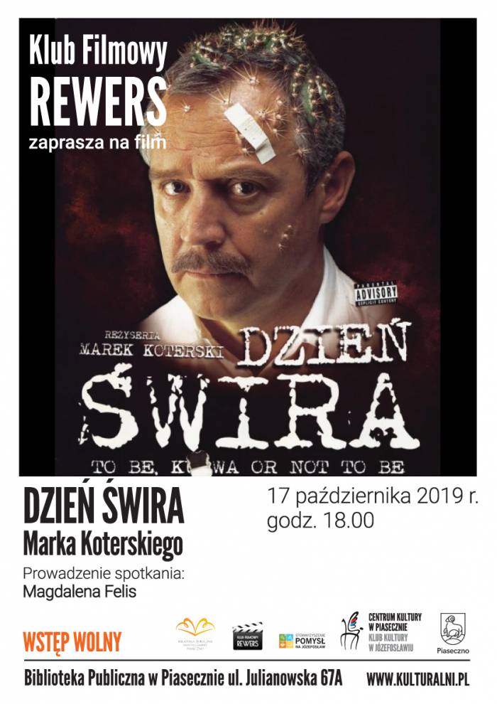 17 października o godz. 18:00 zapraszamy na spotkanie KLUBU FILMOWEGO REWERS, podczas którego będzie można obejrzeć film pt.: Dzień Świra (2002), reż. M. Koterski. Miejsce: Józefosław, Biblioteka. Wstęp wolny.