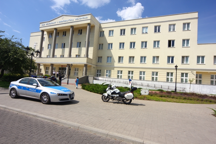 Dzisiaj 8 lipca powtórnie (w piątek po raz pierwszy) ok. godziny 12 rozpoczęła się ewakuacja Sądu w Piasecznie. Policja otrzymała kolejny telefon o bombie w sądzie. Na miejsce przybyły wszystkie służby mundurowe oraz pogotowie ratunkowe i energetyczne. Pirotechnicy sprawdzają wnętrze sądu. Ze źródeł policyjnych dowiedzieliśmy się, że trwają intensywne czynności w celu wykrycia sprawcy bądź sprawców fałszywego alarmu w piątek. _________________