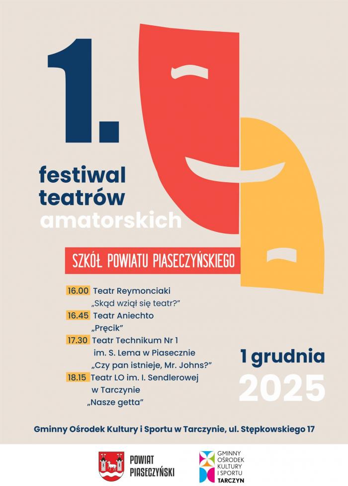 1 grudnia 2025 roku Powiat Piaseczyński zaprasza wszystkich mieszkańców na cztery różnorodne spektakle przygotowane przez młodzież z naszych szkół: