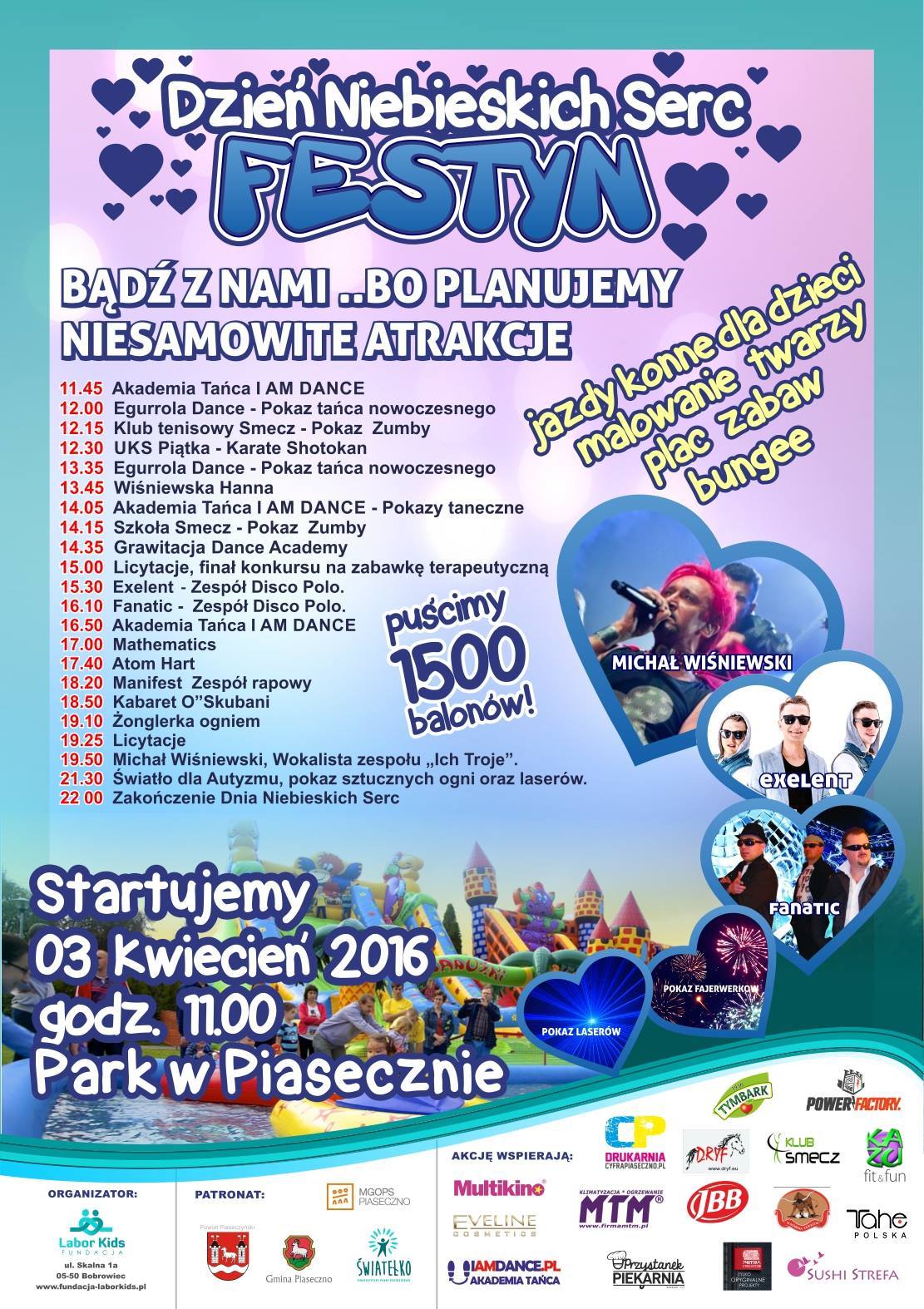 3 kwietnia 2016 r. Fundacja Labor Kids organizuje Festyn Dzień Niebieskich Serc.