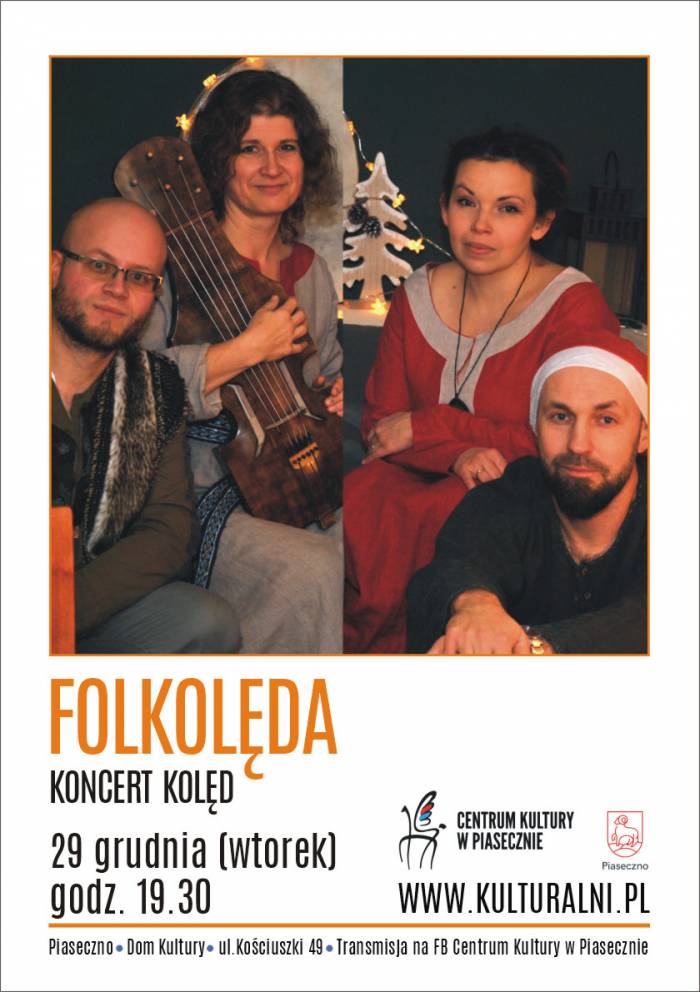 KONCERT KOLĘD Folkolęda 29 grudnia (wtorek) godz. 19.30 Transmisja online – FB Centrum Kultury Dom Kultury, ul. Kościuszki 49, Piaseczno