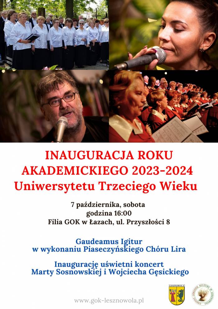 Zapraszamy na Inaugurację Roku Akademickiego 2023/2024 Uniwersytetu Trzeciego Wieku, która odbędzie się w filii GOK w Łazach, przy ulicy Przyszłości 8 w dniu 7 października o godzinie 16:00.