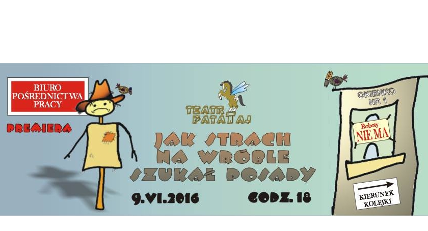 9 czerwca o godzinie 18:00 zapraszamy na spektakl Jak Strach Na Wróble szukał posady, na podstawie tekstu Lidii Bajkowskiej. Reżyseria Ewa Kłujszo. Miejsce: Centrum Kultury Piaseczno Kościuszki 49.