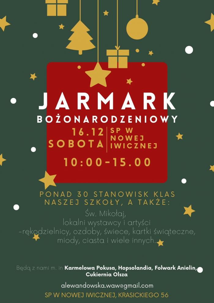 W najbliższą sobotę 16 grudnia 2023 roku zapraszamy na Jarmark Świąteczny do Szkoły Podstawowej w Nowej Iwicznej.