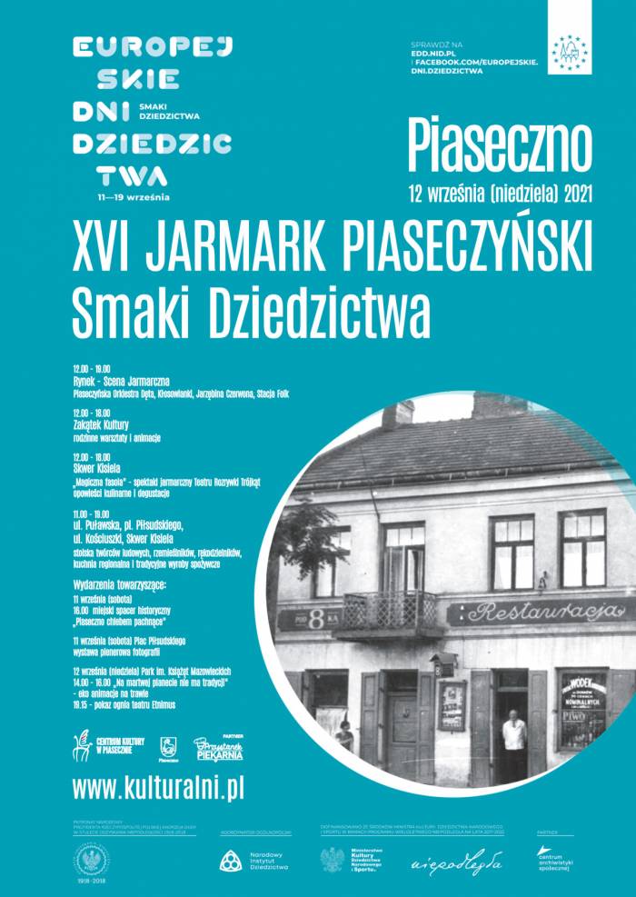 12 września 2021 roku w godz. 12.00 – 19.30 odbędzie się XVI Jarmark Piaseczyński – Smaki Dziedzictwa. Miejsce: centrum Piaseczna: Rynek miejski, Zakątek Kultura, skwer Kisiela. Wstęp wolny. Zapraszamy!