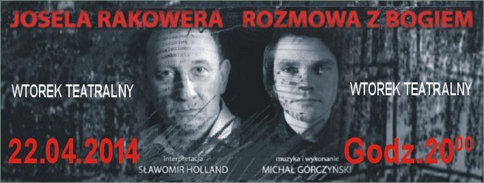 22 kwietnia 2014 roku o godz. 20.00 odbędzie się spektakl w interpretacji Sławomira Hollanda zatytułowany Josela Rakowera rozmowa z Bogiem. Zapraszamy do sali Domu Kultury w Piasecznie, Kościuszki 49. Wstęp 15 zł. „Zvi Kolitz napisał „Josela Rakowera rozmowę z Bogiem” pod wpływem uczucia, które jidyszkajt łączy ze zjawiskiem dybuka. Jest to uczucie tak przemożnej empatii żywego do zmarłego, że aż przypomina opętanie. Żywy przemawia wtedy głosem zmarłego i czuje jego ból. To uczucie potrafi być tak silne, że dominuje wszystkie inne, a nawet zmienia na jakiś czas, albo na zawsze, tożsamość człowieka. Zvi Kolitz, gdy dowiedział się o skali i stopniu okrucieństwa Holokaustu, doznał właśnie tego rodzaju opętania bólem i posłużył nim, nieomal jak medium, do przekazania uczuć ofiar Zagłady.