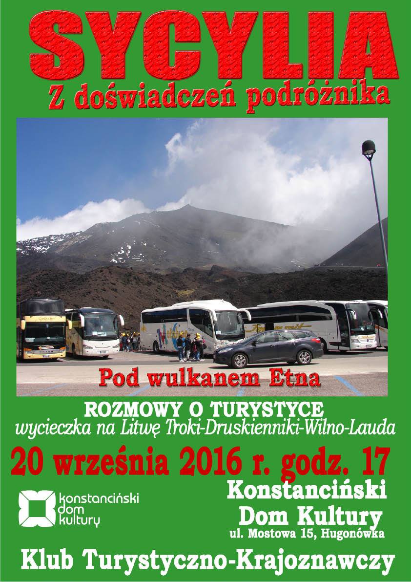 20 września 2016 roku o godz. 17.00 odbędzie się spotkanie Klubu Turystyczno-Krajoznawczego pt. Sycylia. Szczegóły na plakacie: