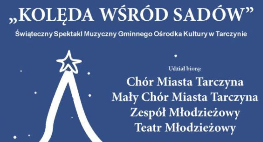 6.01.2018 r. odbędzie się Świąteczny Spektakl Muzyczny Gminnego Ośrodka Kultury w Tarczynie. Udział wezmą: Chór Miasta Tarczyna Mały Chór Miasta Tarczyna Zespół Młodzieżowy Teatr Młodzieżowy Reżyseria, scenariusz, przygotowanie zespołów: Agata Klimczak