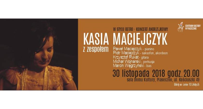 30 listopada o godz. 20:00 zapraszamy na koncert andrzejkowy w stylu retro, w wykonaniu Kasi Maciejczyk z zespołem. Bilet wstępu – 10 zł. Piosenki lat 20. i 30. XX wieku zaprezentuje Kasia Maciejczyk z zespołem w składzie: Paweł Maciejczyk – pianino, Piotr Maciejczyk- saksofon, akordeon, Krzysztof Rukat- gitara, Michał Wojnarski – perkusja, Marcin Węgrzyński – bas.
