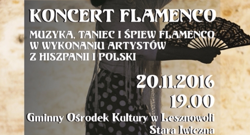 20.11.2016 godz. 19.00 - Koncert Flamenco. Miejsce: Siedziba GOK Lesznowola. Stara Iwiczna, ul. Nowa 6.