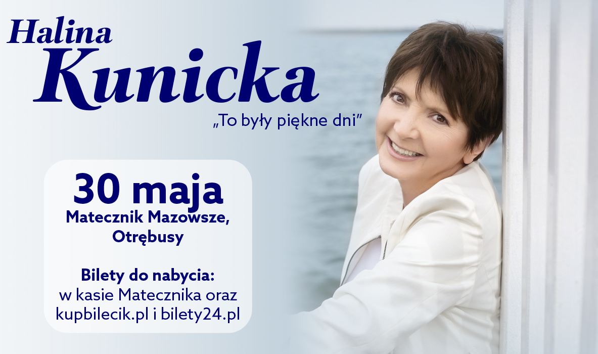 30 maja 2017 r. (wtorek) o godz. 19.00 odbędzie się koncert Haliny Kunickiej - To były piękne dni. Miejsce: Matecznik Mazowsze, ul. Świerkowa 2, Otrębusy.
