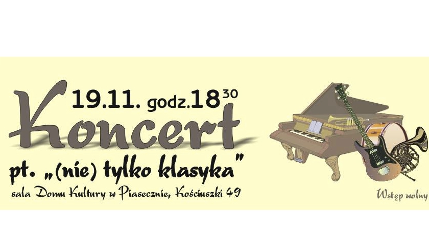 19 listopada zapraszamy na koncert (nie) tylko klasyka. Miejsce: Centrum Kultury Piaseczno Tadeusza Kościuszki 49, Piaseczno. Podczas koncertu usłyszymy utwory w wykonaniu uczniów i absolwentów edukacji muzycznej CK, grających na instrumentach dętych z towarzyszeniem fortepianu.