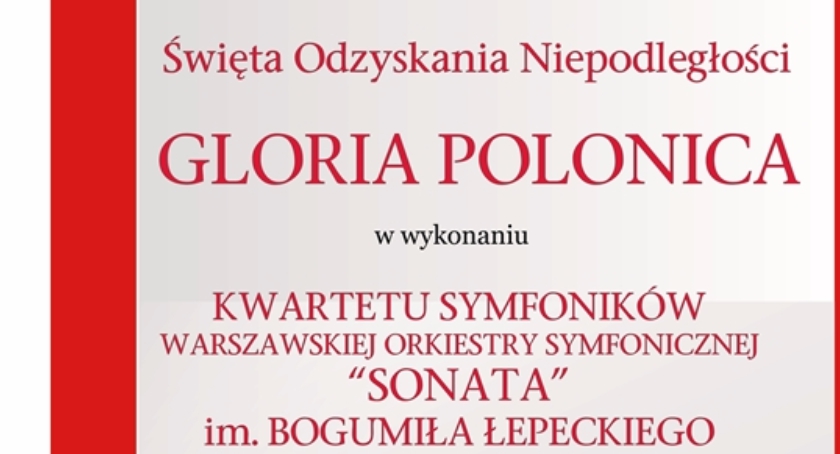 W niedzielę 13.11.2016 o godz. 19.00 zapraszamy na niezwykły Koncert Niepodległościowy pt. "GLORIA POLONICA" w wykonaniu kwartetu smyczkowego Warszawskiej Orkiestry Symfonicznej SONATA im. Bogumiła Łepeckiego. Koncert odbędzie się w kościele pw. Zesłania Ducha Świętego w Starej Iwicznej (ul. Słoneczna 7/9)