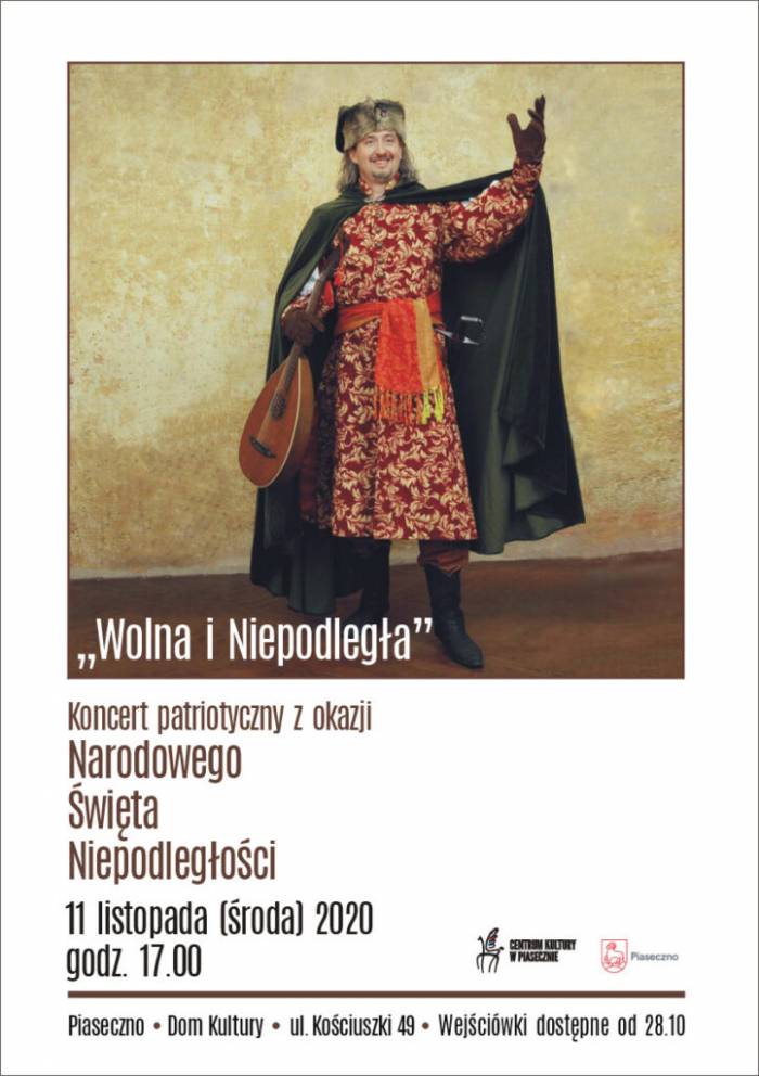 11 listopada o godz. 17.00 odbędzie się koncert patriotyczny z okazji Święta Niepodległości w wykonaniu śpiewaków klasycznych z akompaniamentem na żywo. W pierwszej części usłyszymy znane pieśni patriotyczne jak Warszawianka, Szara Piechota czy Przybyli Ułani… Koncert będzie tylko online LIVE na Facebooku!