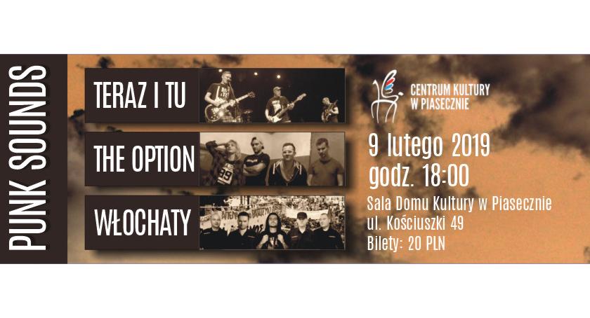 9 lutego 2019 roku o godz. 18.00 odbędzie się koncert PUNK SOUNDS, podczas którego wystąpią zespoły: The Option, Teraz Tu, Włochaty. Miejsce: Piaseczno, ul. Kościuszki 49 (Dom Kultury). Bilety w cenie 20 złotych.