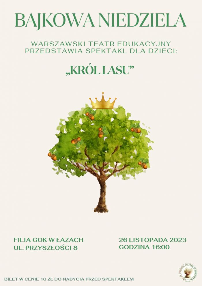 Warszawski Teatr Edukacyjny przedstawia spektakl dla dzieci: "Król lasu", który odbędzie się w ramach kolejnej Bajkowej Niedzieli.