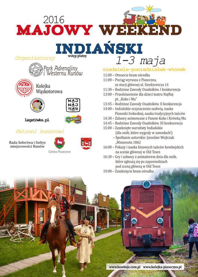 1-3 maja 2016 roku odbędzie się Majowy Weekend Indiański w Runowie. Miejsce: Miasteczko Westernowe "WILD WEST CITY" Chmielna, Runów.