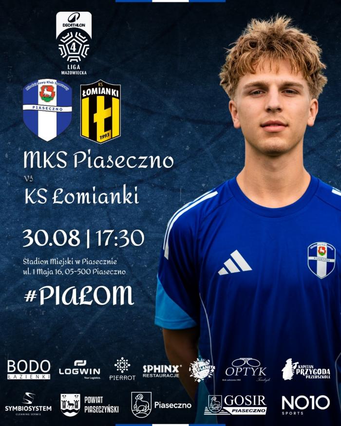 30 sierpnia 2025 roku o godz. 17.30 odbędzie się mecz piłki nożnej, podczas którego MKS Piaseczno podejmie u siebie Klub Sportowy Łomianki. Miejsce: Stadion Miejski przy ul. 1 Maja 16 w Piasecznie.