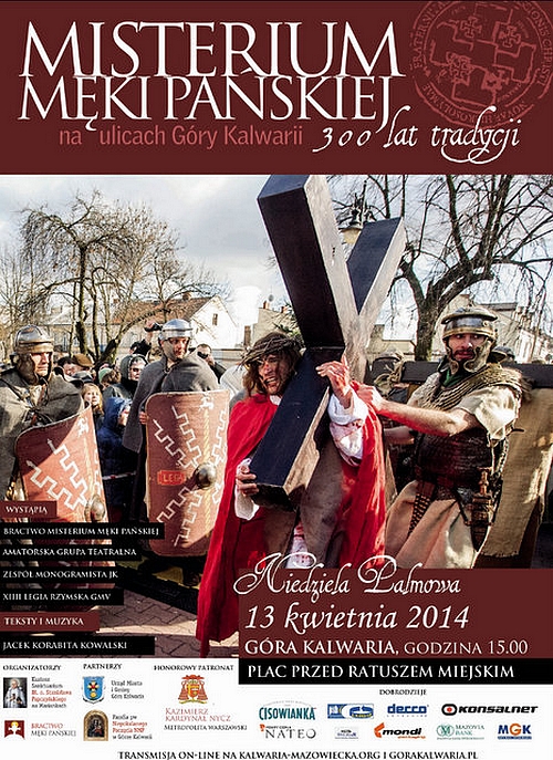 W Niedzielę Palmową - 13 kwietnia 2014 roku o godz. 15.00 - już po raz piąty Góra Kalwaria przeistoczy się w Nową Jerozolimę. Na ulice wyjdzie lud jerozolimski, przed Piłatem stanie Jezus, oskarżany przez faryzeuszy i dostojników żydowskich, rzymscy żołnierze powiodą Go na Golgotę.