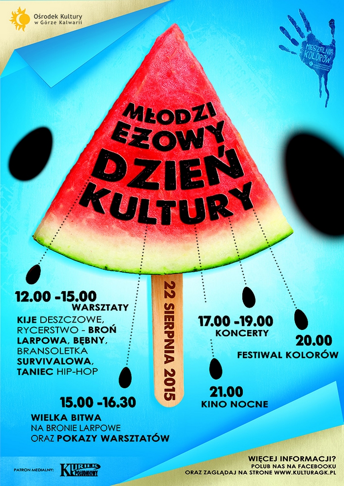 22 sierpnia 2015 r. o godz. 12.00 odbędzie się Młodzieżowy Dzień Kultury. Miejsce: Kalejdoskop Kultury, ul. Białka 9. Szczegóły poniżej: