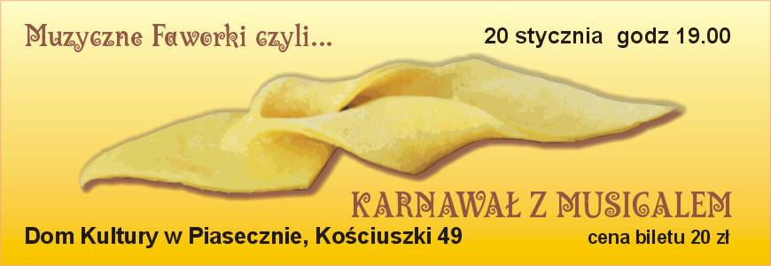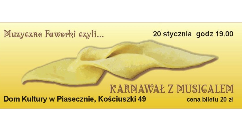 20 stycznia 2017 r. w Domu Kultury zapraszamy do skosztowania muzycznych faworków. Będą nimi przeboje z musicali i filmów, przyozdobione odrobiną operetki. W programie m.in. muzyka George’a Gershwina i Leonarda Bernsteina, a także znane i lubiane piosenki z XX-ego stulecia w wykonaniu Katarzyny Pawłowskiej i Krzysztofa Ciupińskiego-Świątka. Przy fortepianie Tomasz Pawłowski. Będzie dużo o kobietach, miłości i tańcu. Zapraszamy!