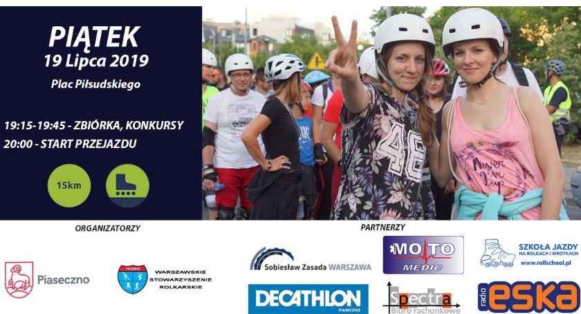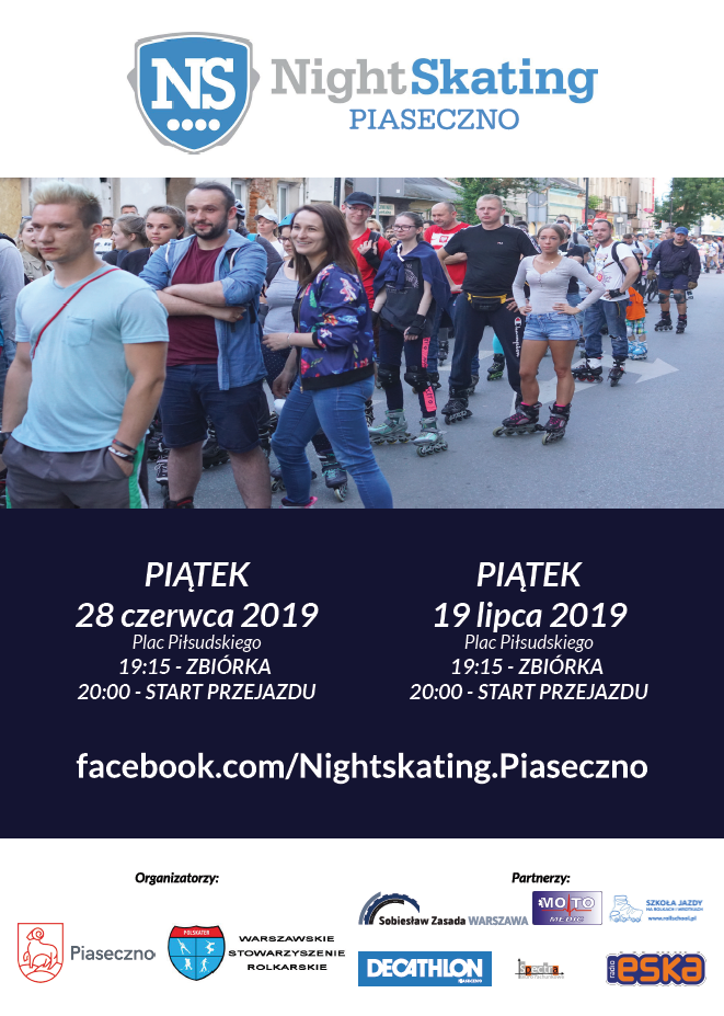 Zapraszamy na trzeci w tym sezonie przejazd Nightskating Piaseczno. Spotykamy się w piątek, 19 lipca o godz. 19:15 na rynku, a na ulice ruszamy punktualnie o 20:00. Udział w imprezie jest bezpłatny i nie wymaga rejestracji. Wymagana jest jedynie umiejętności jazdy w tempie 12 km/h i hamowania.