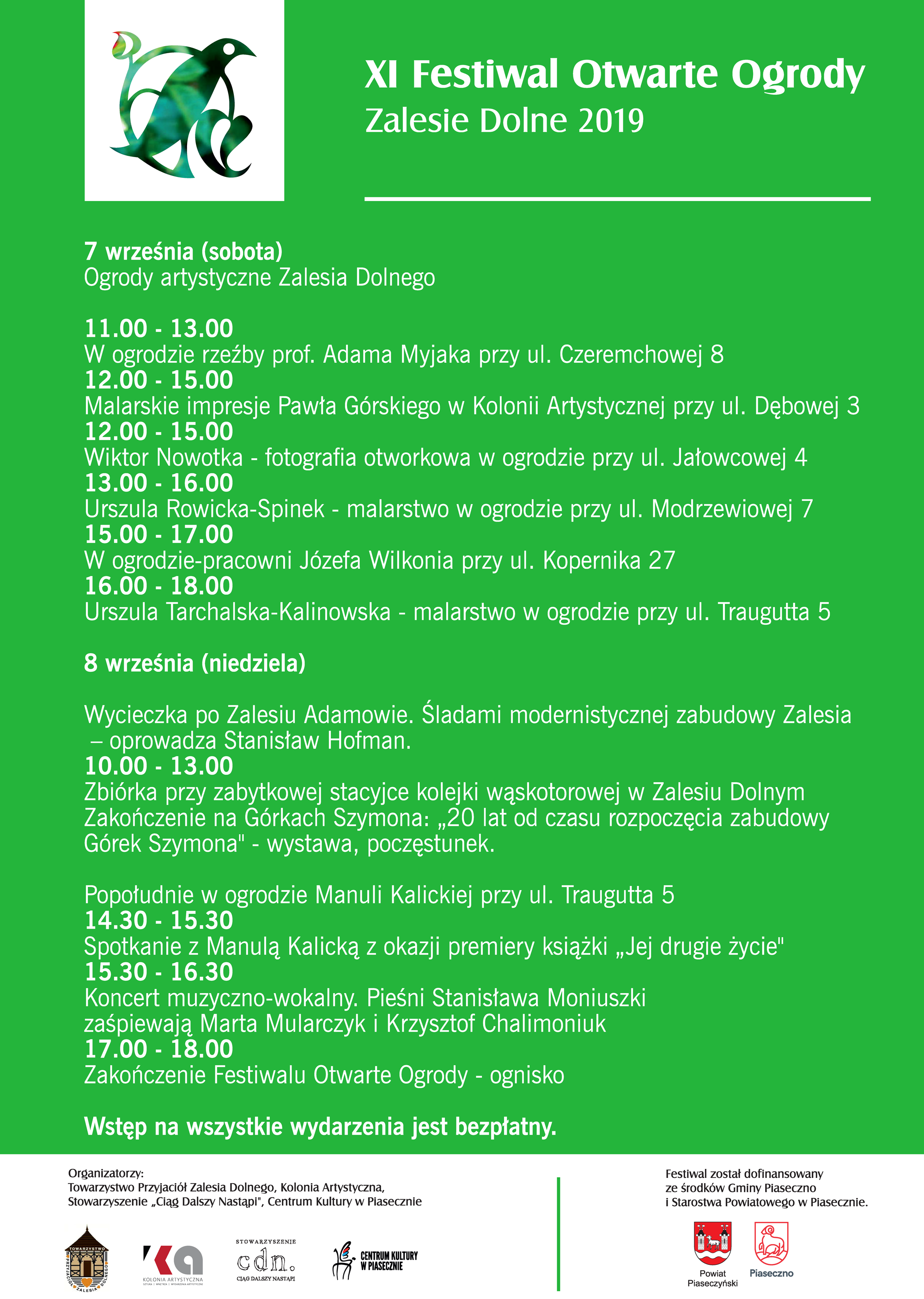 7 oraz 8 września 2019 roku zapraszamy na XI edycję Festiwalu Otwarte Ogrody, który odbędzie się w ogrodach na terenie Zalesia Dolnego.