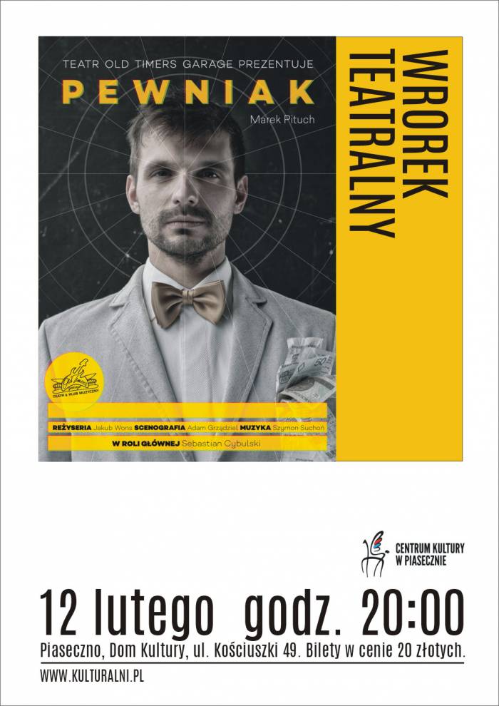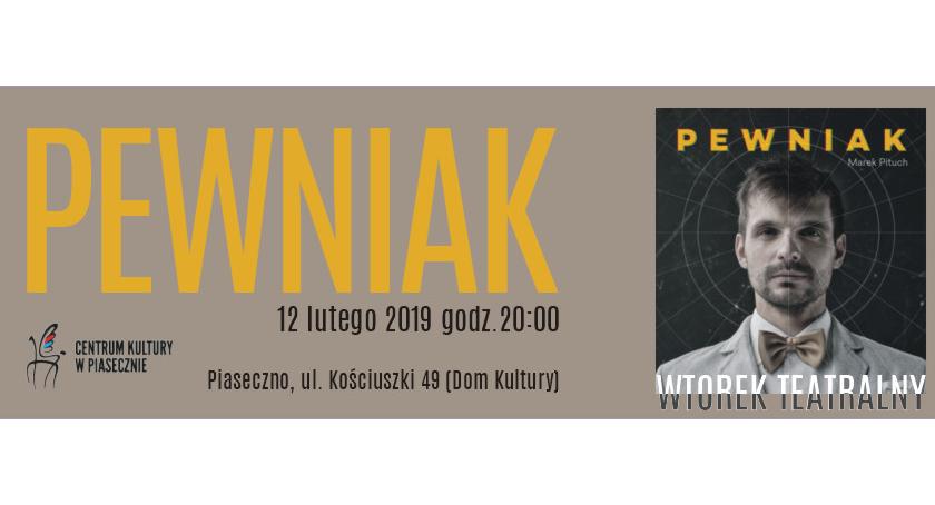 12 lutego 2019 roku o godz. 20.00 odbędzie się Wtorek Teatralny, podczas którego będzie można obejrzeć monodram Sebastiana Cybulskiego pn.: "Pewniak". Miejsce: Piaseczno, ul. Kościuszki 49 (Dom Kultury). Bilety w cenie 20 .złotych.