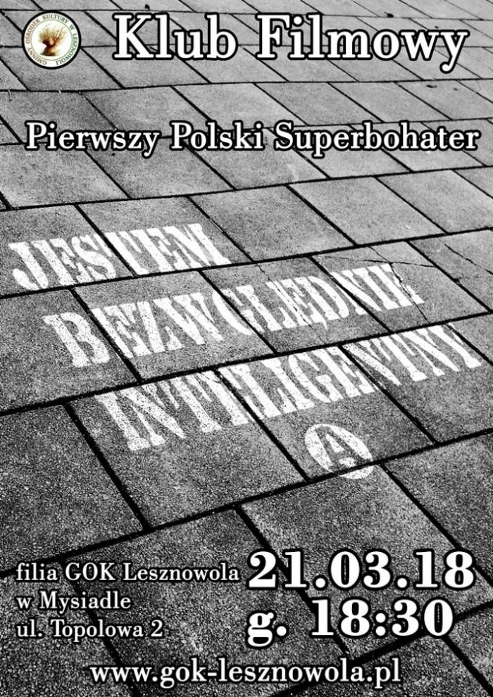 21.03.2018 godz. 18.30 - Klub Filmowy. Pierwszy Polski Superbohater. Miejsce: filia GOK Lesznowola w Mysiadle, ul. Topolowa 2