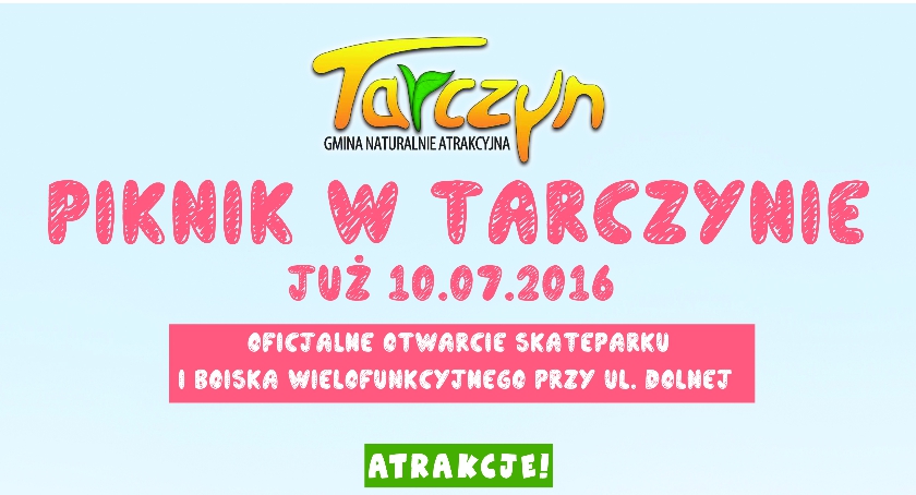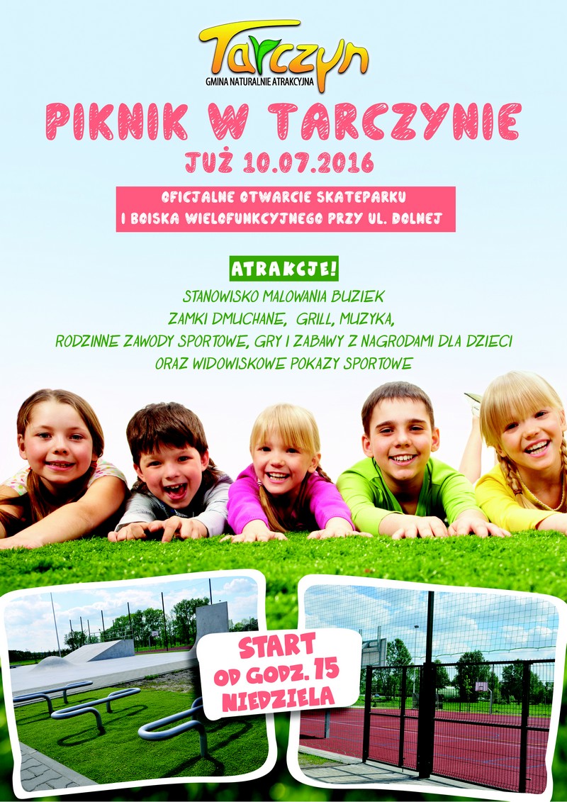 10 lipca 2016 roku o godz. 15.00 zapraszamy na Piknik rodzinny w Tarczynie. Szczegóły na plakacie: