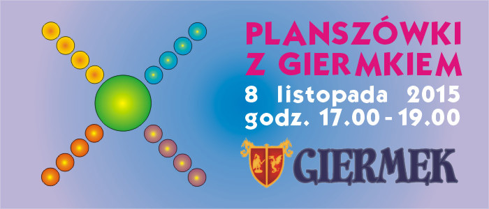 8 listopada o godzinie 17:00 zapraszamy na rodzinne granie w gry planszowe - Planszówki z Giermkiem. Miejsce: Dom Kultury w Piasecznie , ul Kościuszki 49. Wstęp wolny. Będzie można zagrać w takie hity jak Dobble, Kolejka, Mexica, 7 cudów świata, Wsiąść do pociągu, Pszczółki czy Dixit. Mamy około 50 gier do wyboru!