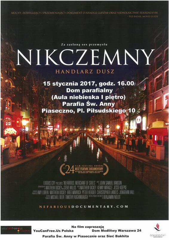 15 stycznia 2017 r. o godz. 16.00 w domu parafialnym parafii Św. Anny wyświetlony zostanie film dokumentalny "Nikczemny handlarz dusz".
