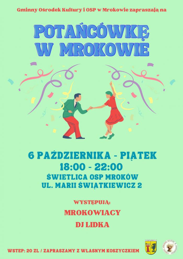Zapraszamy na Potańcówkę w Mrokowie, która odbędzie się 6 października 2023 roku o godzinie 18:00 w OSP w Mrokowie przy ulicy Marii Świątkiewicz 2.