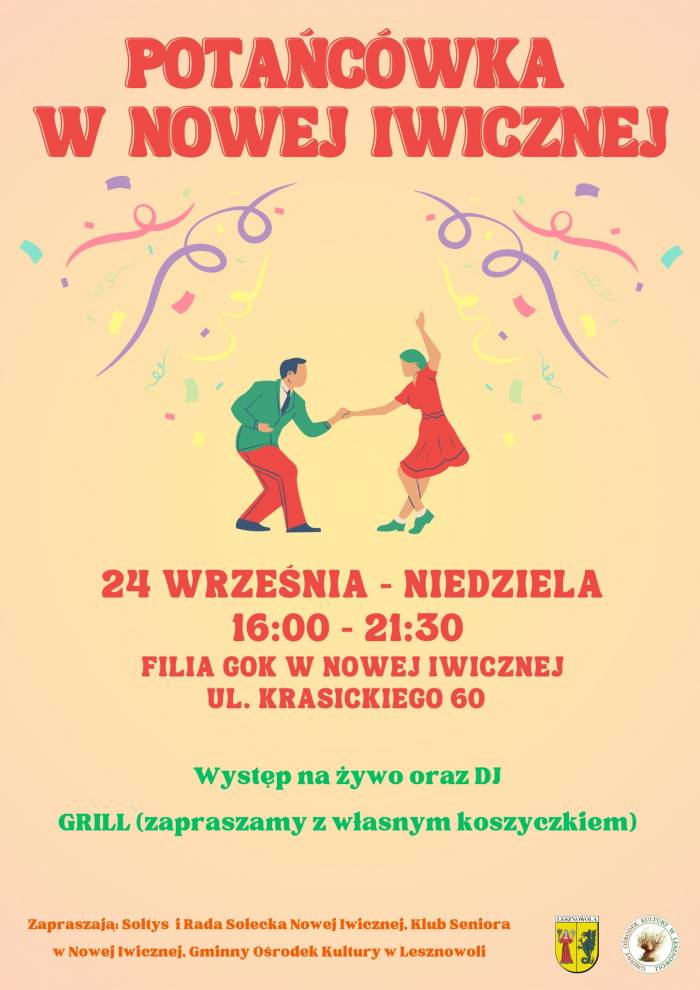 Zapraszamy na Potańcówkę w Nowej Iwicznej, która odbędzie się 24 września 2023 roku w filii GOK w Nowej Iwicznej przy ulicy Krasickiego 60.