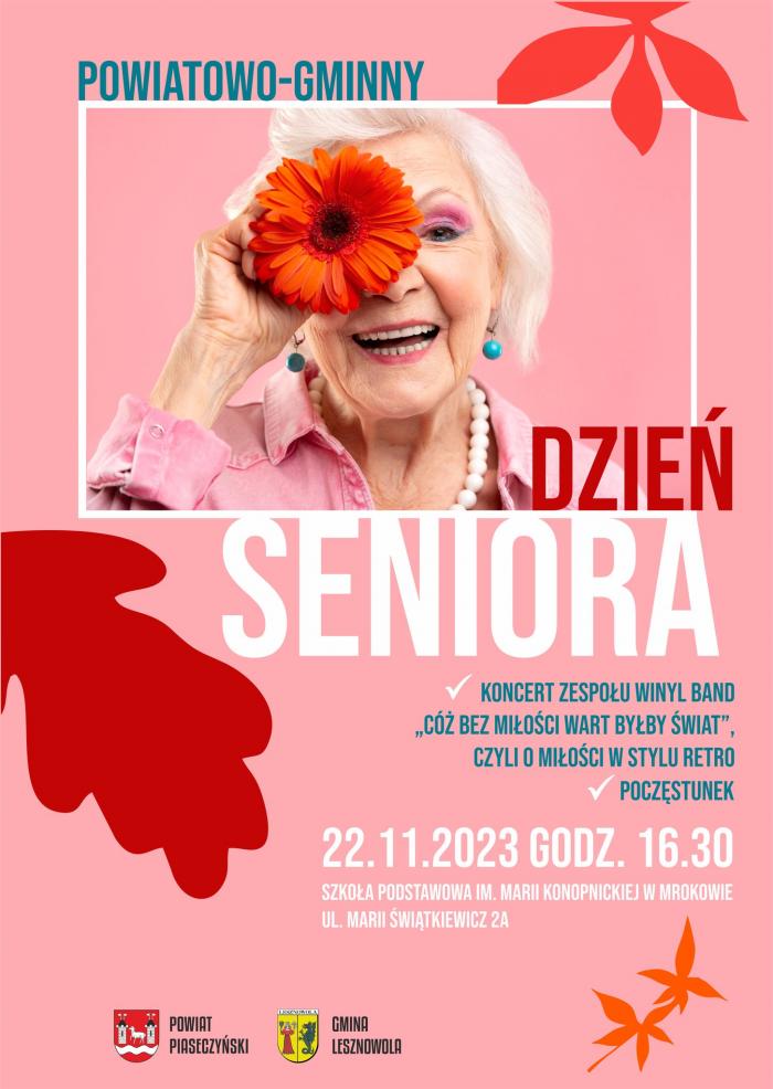 Urząd Gminy Lesznowola zaprasza seniorów do wspólnego świętowania. Termin: 22 listopada 2023 roku o godz. 16.30. Miejsce: Szkoła Podstawowa im. Marii Konopnickiej w Mrokowie, ul. Marii Świątkiewicz 2A.