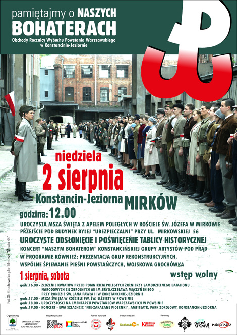 1-2 sierpnia 2015 roku w Konstancinie-Jeziornie odbędą się uroczystości związane z 71. rocznicą wybuchu Powstania Warszawskiego. W programie m.in. odsłonięcie pamiątkowej tablicy oraz koncert Ewa Szlachcic. Zapraszamy mieszkańców do udziału w uroczystościach.