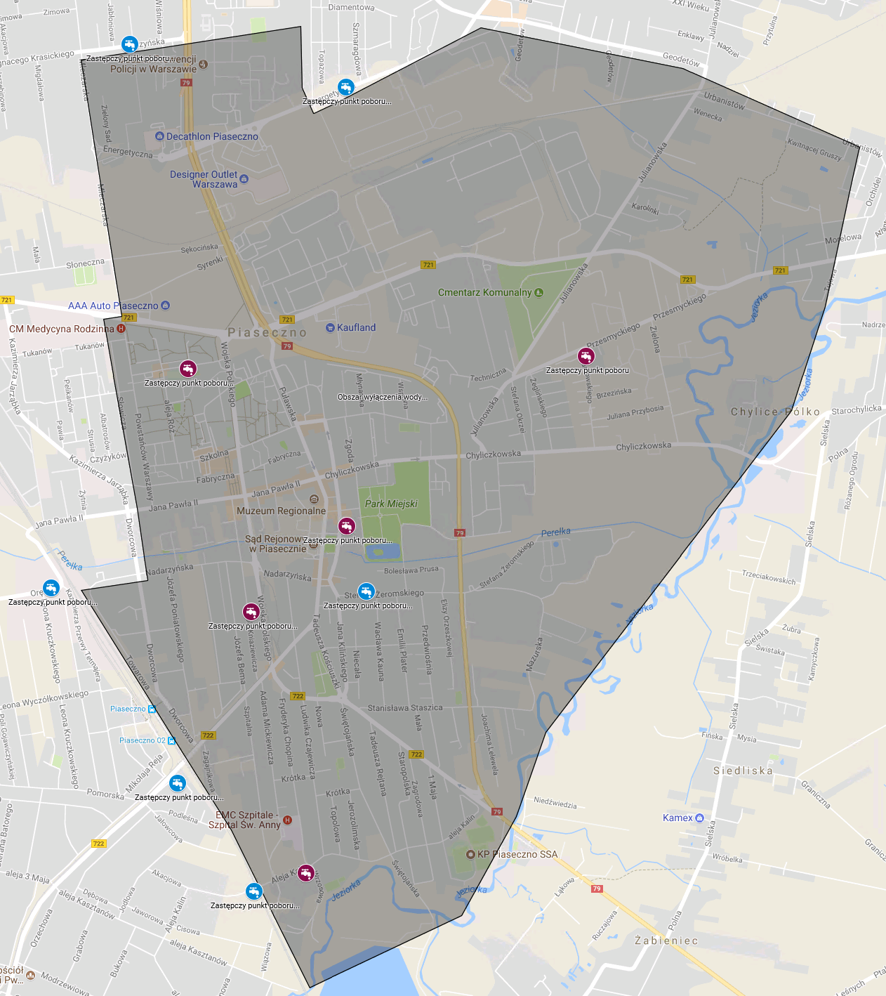 PWiK Piaseczno informuje, że w związku z przebudową drogi wojewódzkiej nr 721, w nocy z 24/25.04.2018 r. (wtorek/środa) w godzinach: 22:00 – 06:00 nastąpi przerwa w dostawie wody na terenie części miasta Piaseczno (obszar miasta położony na wschód od torów linii kolejowej nr 8 Warszawa-Radom).